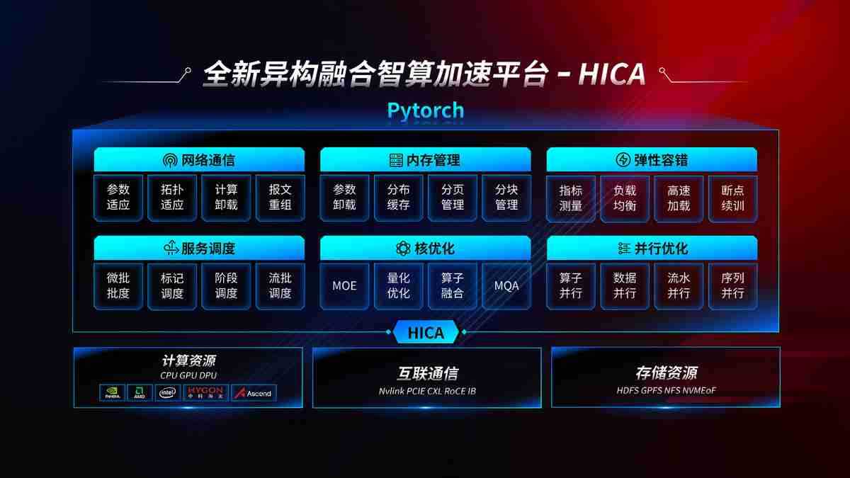 通过自研的服务层、、中间适配层、、以及调度编排算法,,,,采用数据并行、、、模型并行等多种并行方式,,,,把并行计算任务进行有效的分解,,使其分别由相应的软件栈和算力资源来承接。。。。当GPU资源变化,,,,HICA可以实时动态调度计算子任务并调整模型拓扑和架构,,,以充分聚合各种算力资源。。。